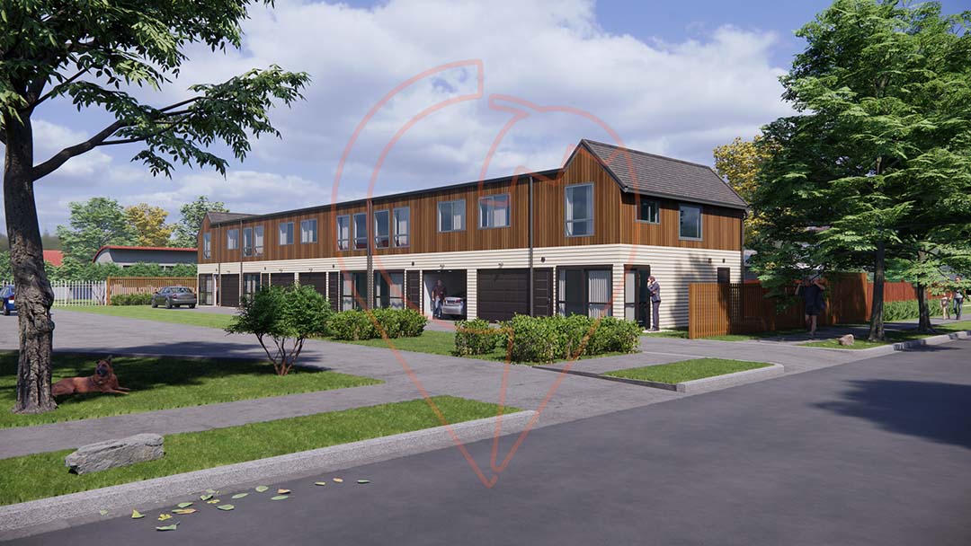Located in Mangere East, close to the southwestern motorway, the development is adjacent to Kingsford school, South Auckland church of Christ and the Kingsford Supermarket. Currently under construction, the client’s brief was to have a maximum number of three-bedroom units with car parking. Ghostpaeperstudio has achieved 5 townhouse units, with car parking. With an entrance from the Kairanga street, the outdoor living areas are oriented north with landscaping and the street facing unit has a pedestrian entry from Kairanga street.