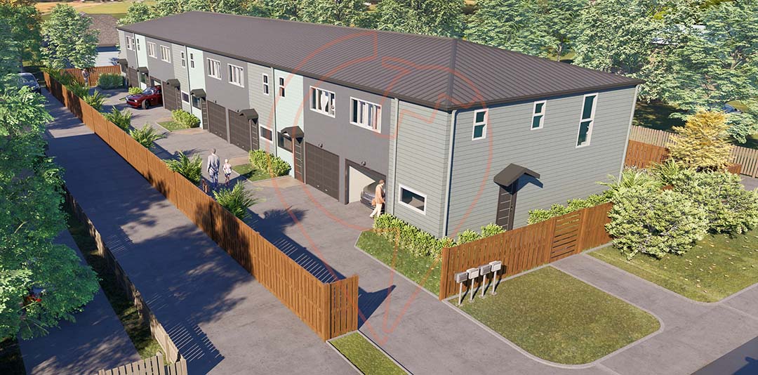 Near the Papakura train station, off Settlement road, this development comprises of seven townhouses. With three large bedrooms, one ensuite and one common toilet and a powder room on the ground, this development efficiently incorporates a car park for each of the units within 120 sq m.